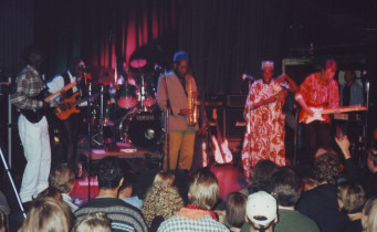 ![]() 0540A: Hasse Walli & Asamaan performing at the release party for Hasse´s biography book "Hehkuva Kitara". Left to right: Libasse Sall, Rane Diallo, Pape Sarr, Meissa Niang, Yamar Thiam, Ousseynou Mbaye, Hasse Walli. To view videos of this concert please go to the Videos section. Tavastia Club, September 11th, 1996 © H. Walli |