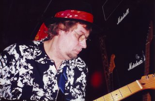 ![]() 0021: Hasse on stage at his 50th birthday party. To view a guitar solo please go to the Multimedia section. Tavastia Club, Helsinki, Finland, January 1998. © H. Walli