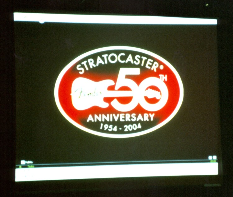 0438: The official logo of The 50th Anniversary of the Fender Stratocaster guitar, used at the Anniversary party in Finland on August 29th, 2004.