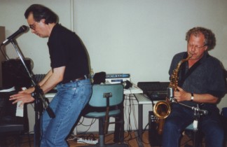 ![]() 0514C: Blues Section, rehearsing for the Tavastia Concert. Left to right: Jim Pembroke and Eero Koivistoinen. Helsinki, Sept. 9th, 1996. © H. Walli |