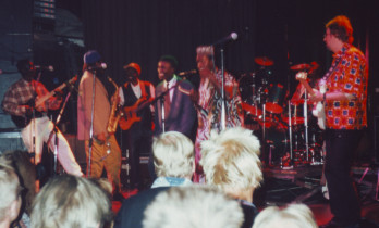 ![]() 0924: Hasse Walli with his Senegalese band, giving a percussion performance at the Fiesta Festival in Pärnu. Pärnu, Estonia, Midsummer in June, 1990. Photo: Arno Saar |