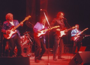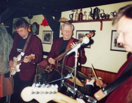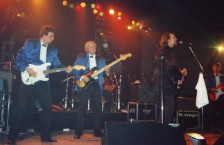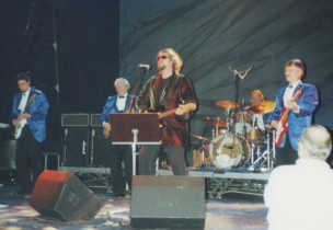0024: Hasse on stage with The Strangers. On the right bass player Kari "Jet"